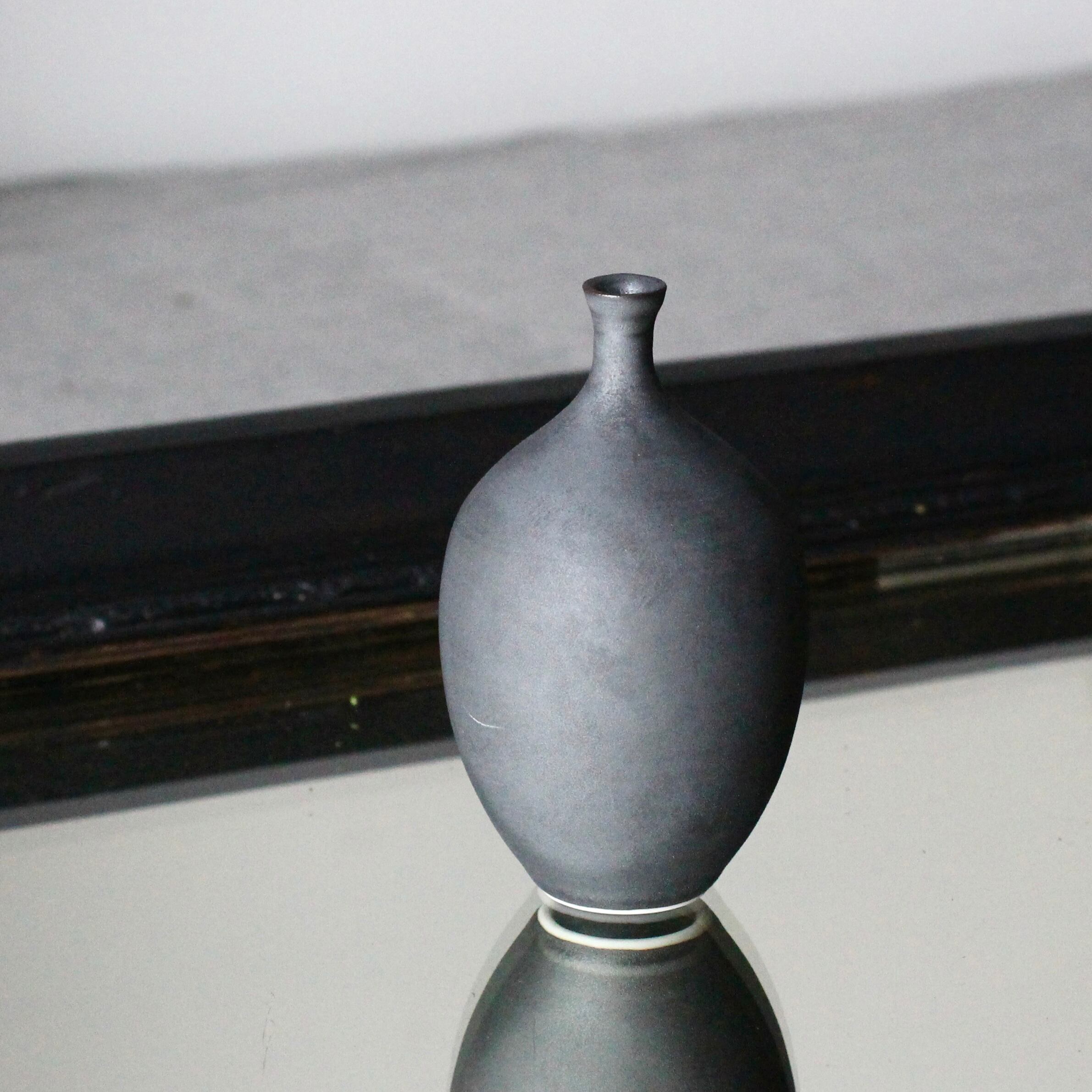 【中里博恒】墨渇黒釉 ミニ花入 E