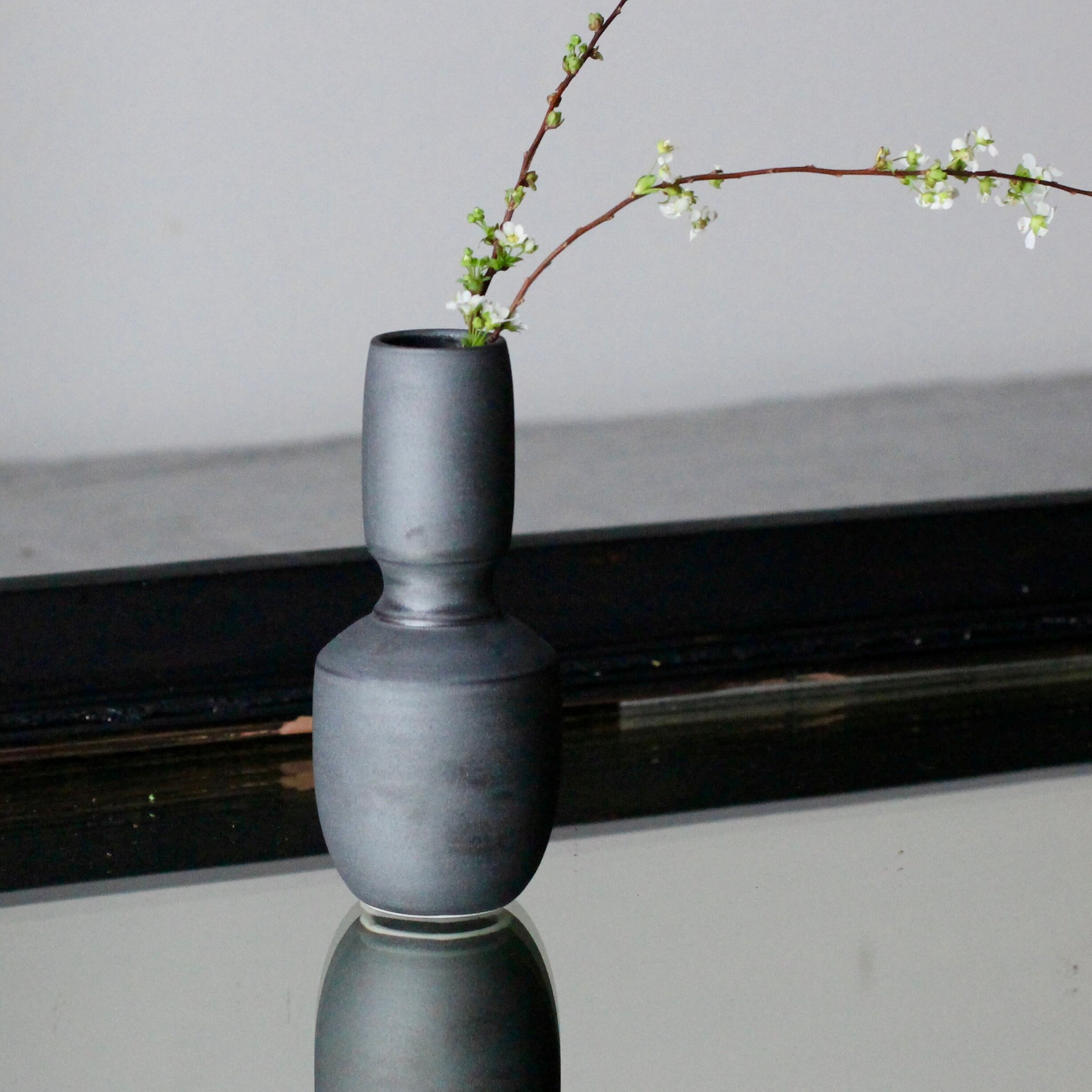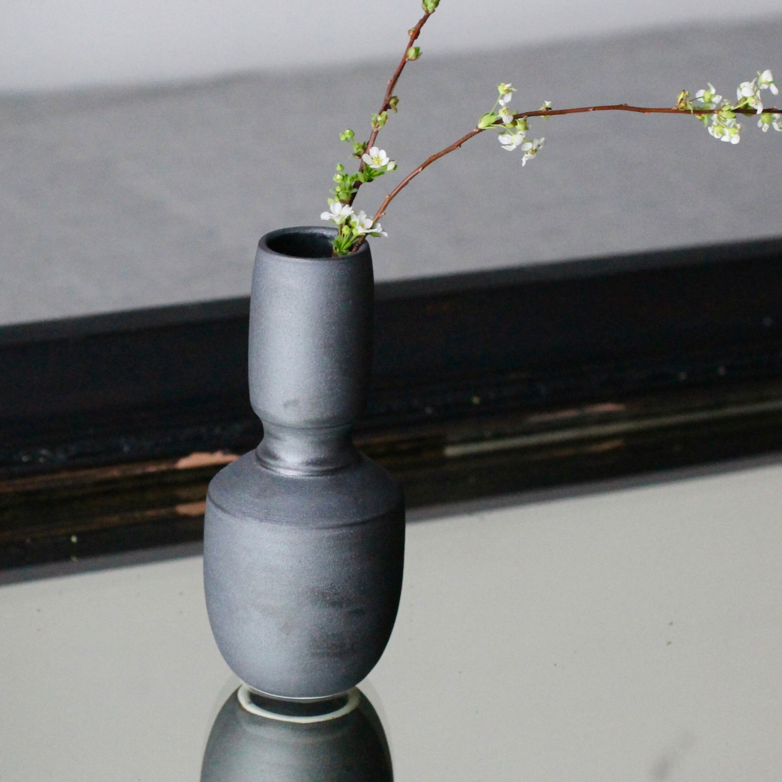 【中里博恒】墨渇黒釉 ミニ花入 F
