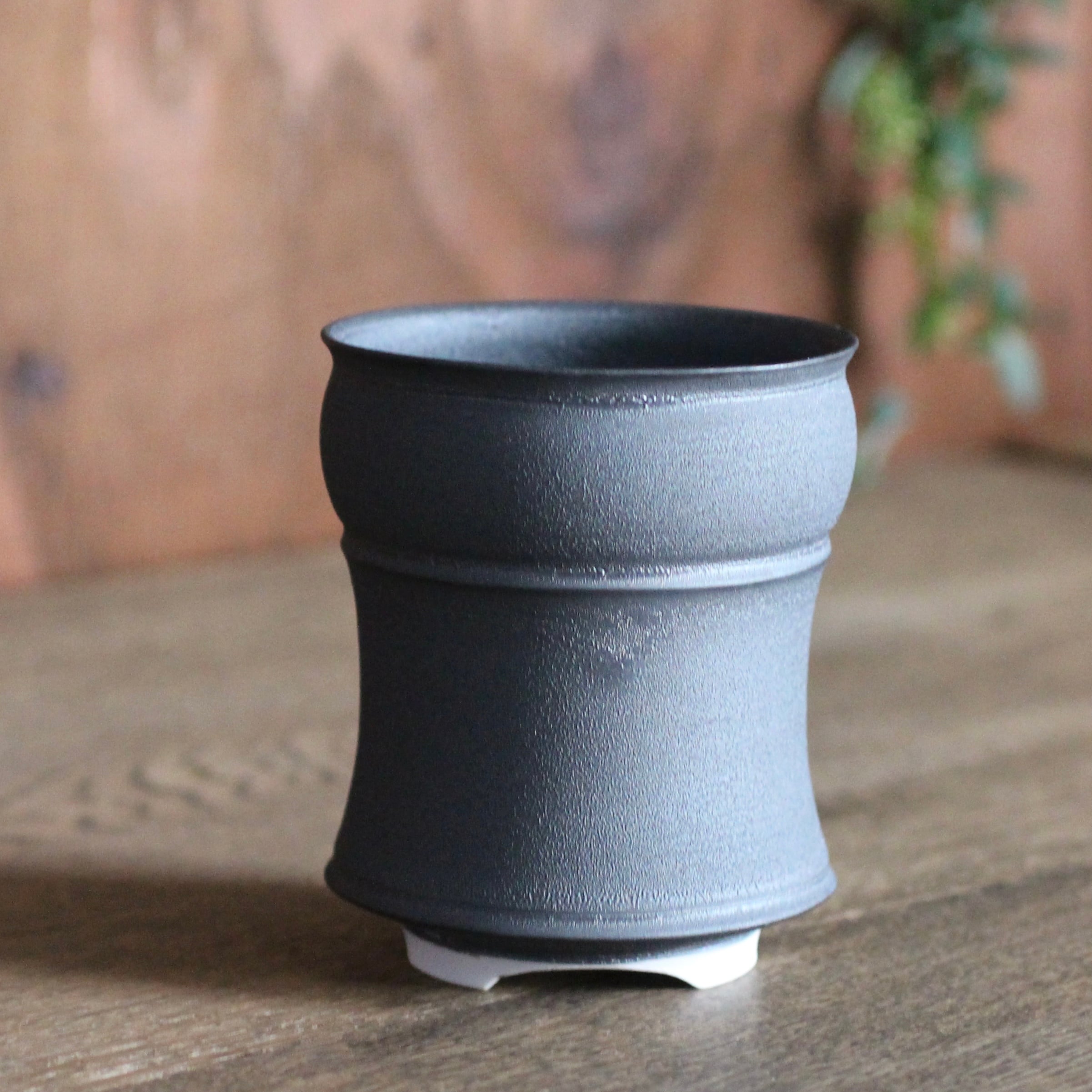 【中里博恒】墨渇黒釉 植木鉢 3号A